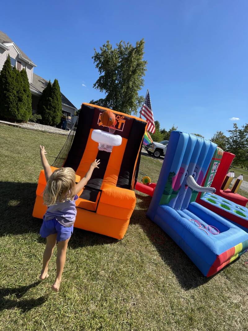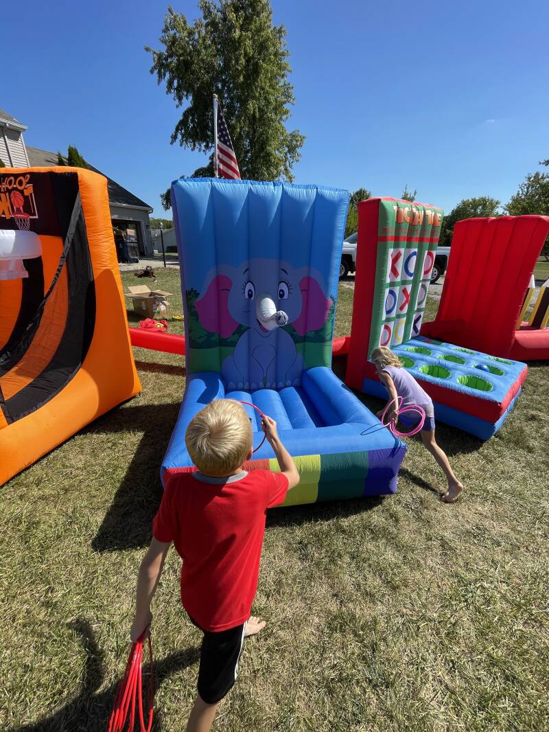 Bring the fun and excitement of the carnival or fair to your back yard. This 4 in 1 inflatable carnival game set up is great for any event! Comes with Everything!