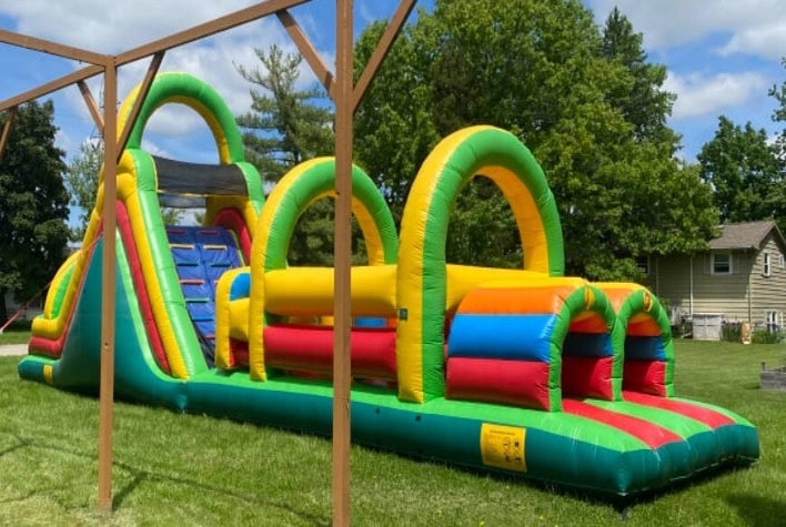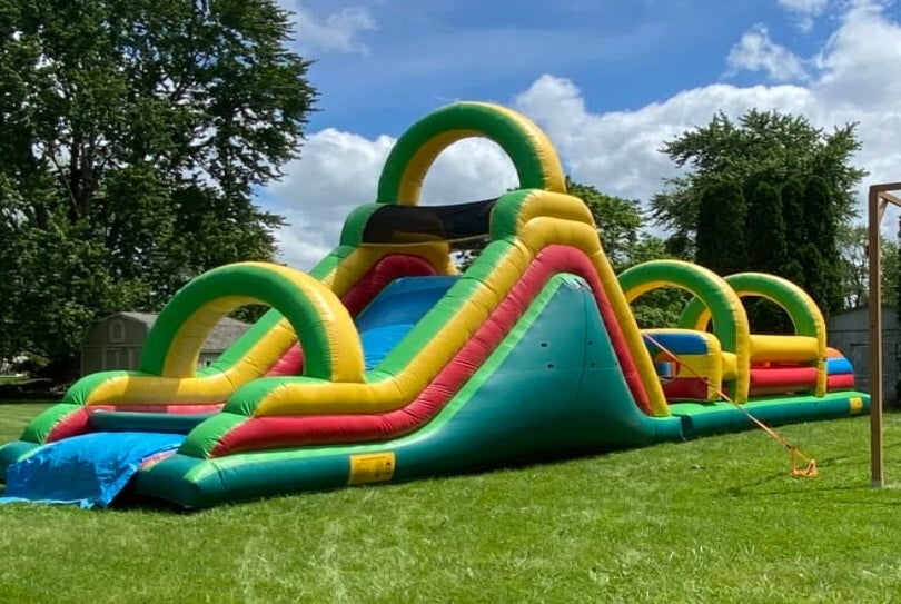 Looking for something to keep the kids entertained at your next party? Look no further with this 58' Dual Lane Obstacle Course.